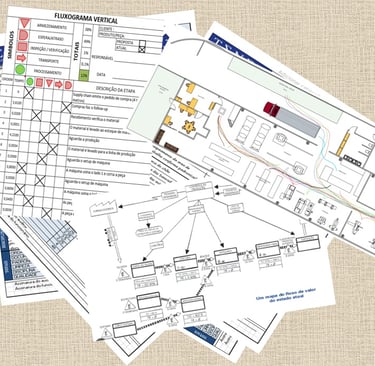 fluxograma de processo: documentação clara e simples do fluxo do produto passando por todos os processos. É usado como informação de padronização desde a engenharia até a operação em fábrica.
